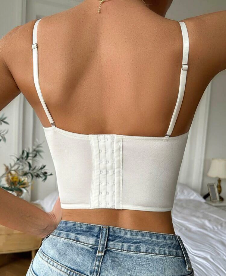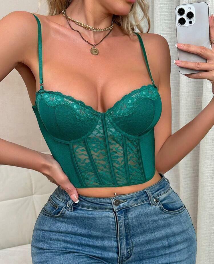 Bustier con encaje floral y copa con aros. Ideal para usar solo o con jeans.